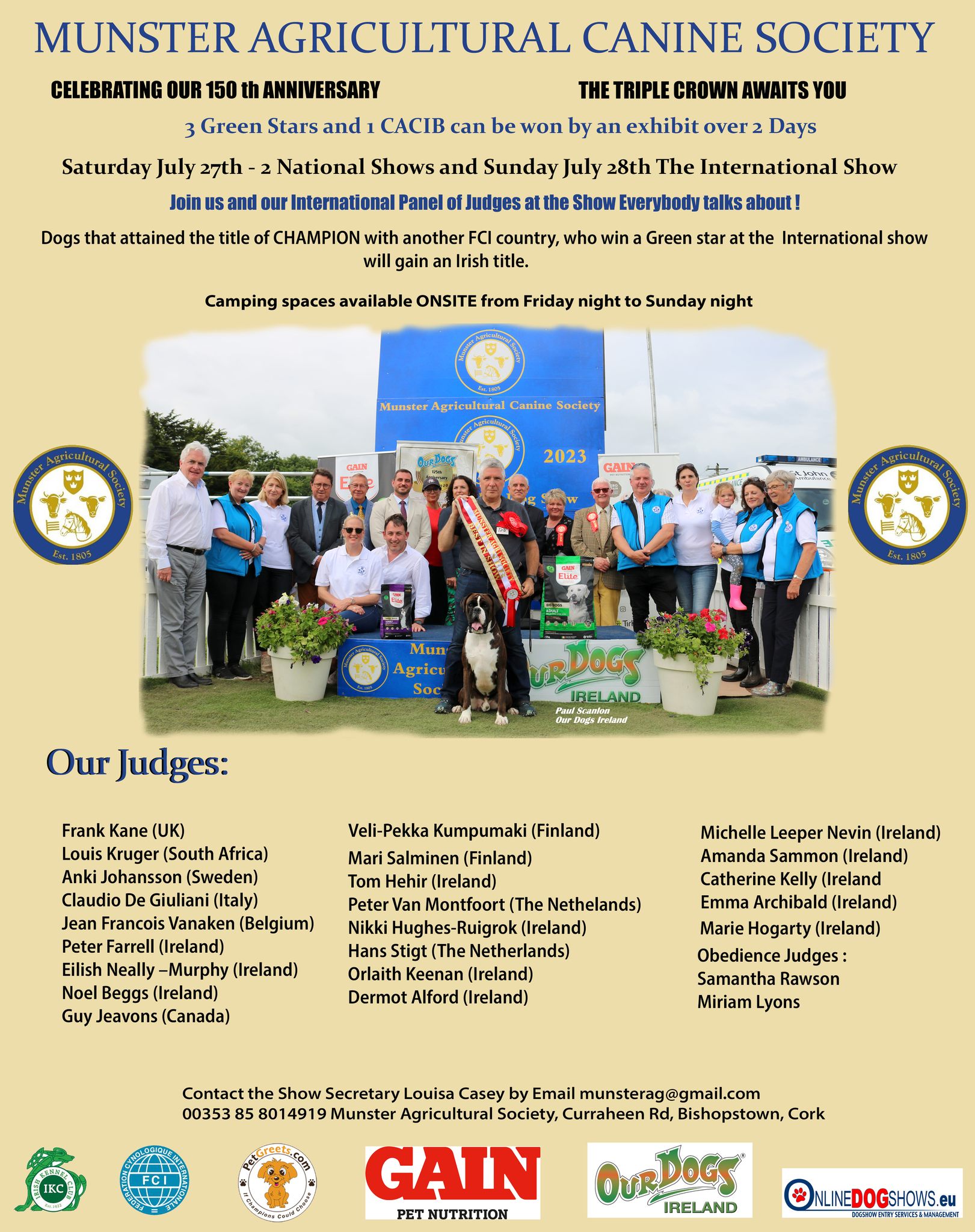 As part of the 150 Years of the Munster Agricultural Canine Society, we are holding 3 Shows over 2 days to mark this auspicious anniversary.