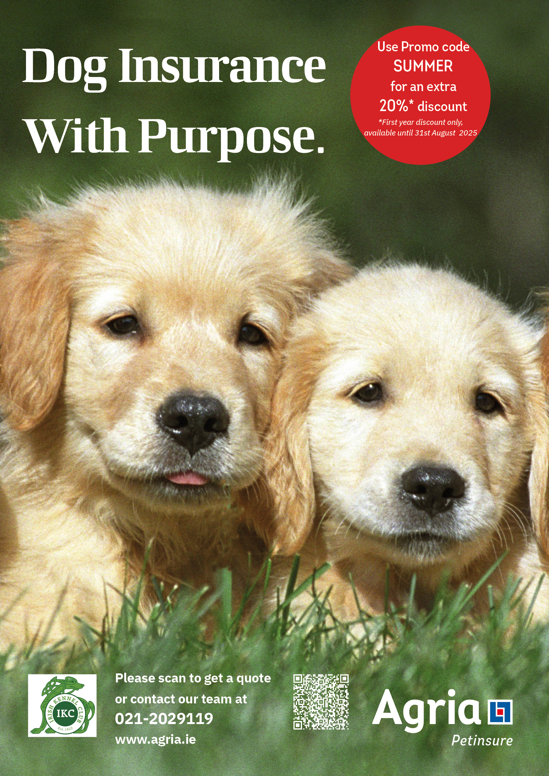 As one of Ireland’s leading specialist pet insurers, Agria is committed to helping pets lead healthier, happier lives. Their dedication to the canine community shines through in their sponsorship of our 2025 Canine Shows — including an exclusive 10% discount for our exhibitors and attendees.